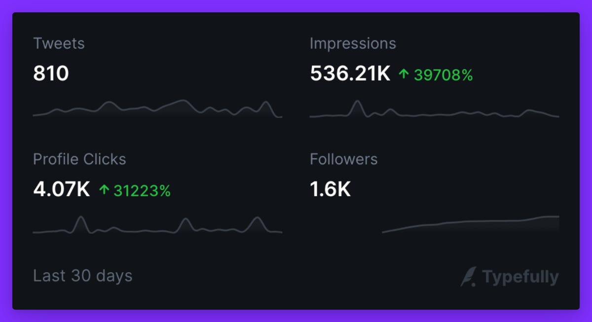 I subscribed for one year of typefully.com, a nice Twitter tool for scheduling, publishing, and analyzing your Twitter growth. It's given me a trigger for "now I need to be consistent".